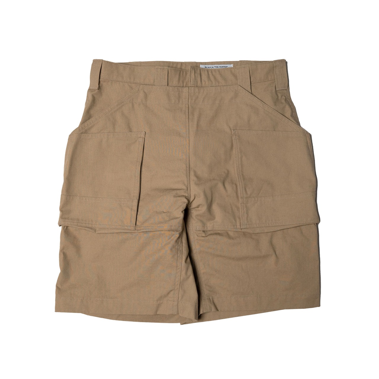 cotton53% nylon47%RIPSTOP。軽量ながらハリのあるタフな質感は形をしっかり保ち存在感のあるシルエットをつくり出します。マットでナチュラルな素材感、リップストプの構造とナイロンの特性による機能性をバランス良く兼ね備えた生地です。