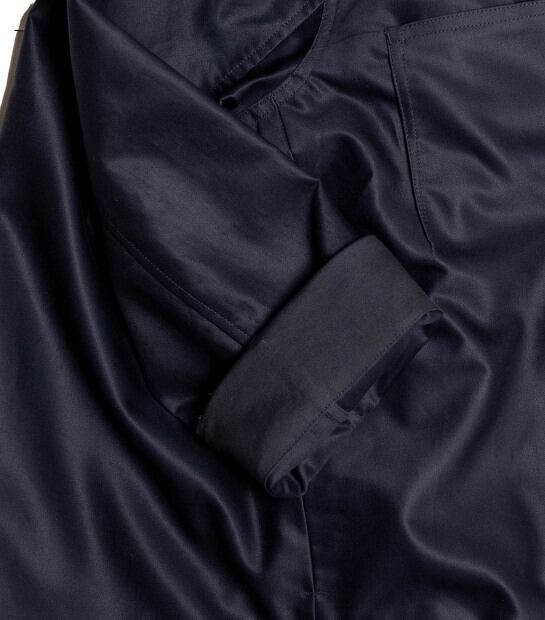 ユーロワークに代表されるモールスキン素材。特徴的な厚みと、独特のヌメっとした手触り、さらに光沢のある外観が洒脱な印象を与えます。使用を重ねることで、経年変化により風合いが増し、起毛感が程よく現れ、光沢も馴染んでいくのがこの素材の魅力の一つです。今回使用される「長繊維綿ギザコットン」によるモールスキンは、上質な綿を使ったもので、よりしなやかで強度が高いのが特徴です。カラーは、モールスキンの伝統的なカラーであるブラック、そしてネイビーの2色展開となります。また、裏地にはフィールドジャケットM1943の内張りで使用された高密度のコットンオックス地(100% cotton)が採用されています。