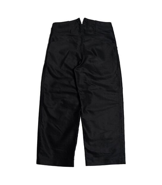MOLESKINを用いた幅広な裾口が特徴のワイドワークパンツ。肌への接触が少なくストレスを感じにくい設計となっています。“ワークパンツ”としての重要な要素となるポケットは前後共に一般的なスレキではなく、パンツ本体と同じ強度のある共布で仕立てました。快適さと機能性から多くのリピーターに支持されており、毎日の着用にも最適なワークパンツです。ベルト、サスペンダーでの着用が可能。