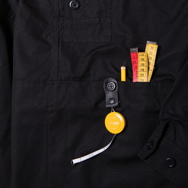 特定のアーティストや職人に向けたワークウェアをプロデュースする上でのプロジェクトであり、製品のプロトタイプ作製も兼ねています。このラインは、着心地や動きやすさ、シルエットなど、日常の作業環境での実用性を考慮しつつ、より良いパターンを追求することを目的としています。研究と実験を重ねながら、最適な形を探求し、製品としても展開されます。