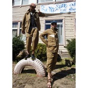 アトリエで作業するアーティスト達「59 rivoli squater」の一連のライフワークにフォーカスしたリバーシブルジャケット。 道具箱の要素を組み込みました。表側は計8個のポケット、裏側は汚す面と捉え、汚れを拭くツールをタオル地で機能としてディティールに取り入れてあります。各タオル地は取り外し式となっており洗濯も可能。収納力のあるポケットに対応する身幅の広いシルエットとなっており、確かな縫製技術での一点。素材はcotton100%の”1991Levi’sチノ”。きめの細かい綾織でタフに使える生地でありながら品のある風合いが特徴。TOOLBOX CROPPEDとH.R GIMMICKS OVERALLSと合わせて着用していただけます。quality: cotton 100% 別布ラバープリント地。p>